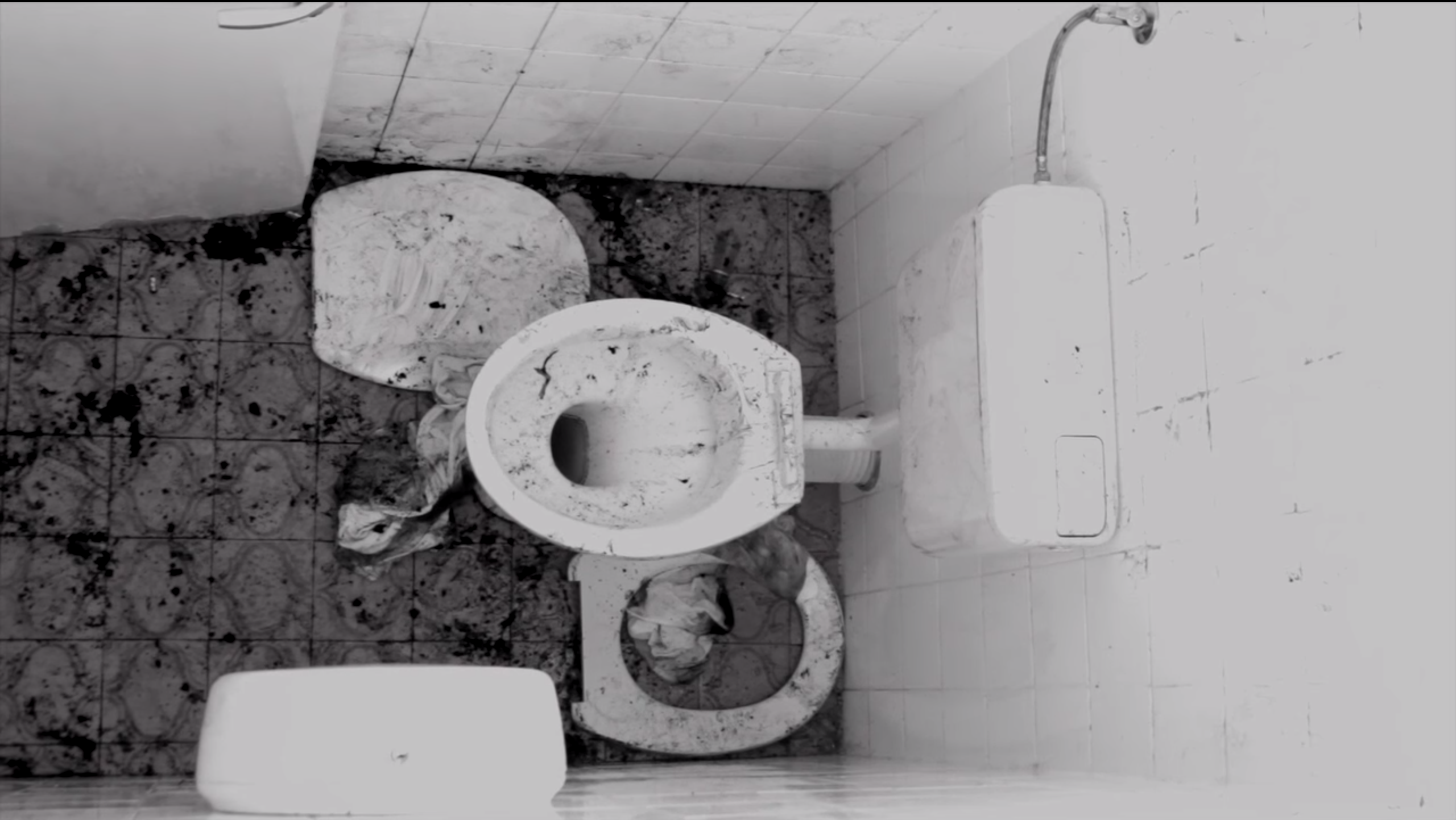 At first, the character is bathed in white, representing humanity’s purity and holiness (sacred/divine). Only their eyes are black, mirroring their nature as main gates into our body, and allowing for its pollution. In accordance with the depth of commitment towards drugs, the body is gradually contaminated, until eventually contamination takes over. The faeces that the character is rolling inside of stand for the consequences of materialism on people’s lives. We observe destruction as the character replaces morals with addiction, losing all faith in the process. The toilet seats represent the levels of humanity, as the water inside constitutes the holy water. Through time it undergoes the change from a purifying agent to the recipient of betrayal. The name of the movie, “Dosada”, describes the human condition of losing one’s purpose in the eye of overwhelming opportunity. Being given freedom and handing it out carelessly, thereby risking letting go of human virtue; faith, love, and hope.